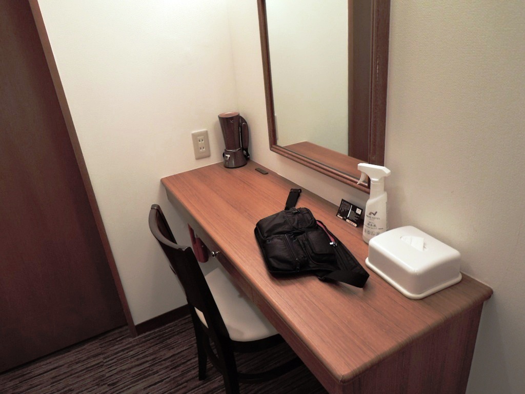 這張梳妝台,應該也是房間升等後才有的。就在浴室門口對面,吹風機也放在這裡。