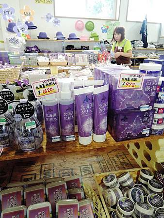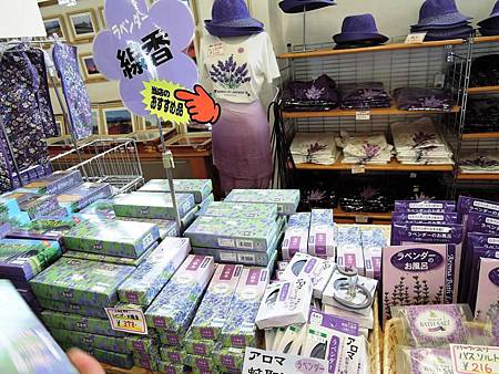 一到這裡,我們就被賣店吸引,先進去逛一逛。裡面滿滿的薰衣草商品。因為太陽實在太大,所以我們想先給芸芸買一頂帽子。