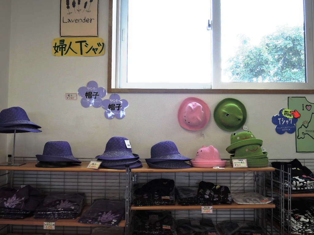 帽子的選擇不多,大人的薰衣草紫帽很精緻,可惜沒有小孩款。小孩的只有青蛙和熊熊帽(台北就有賣的款式),但為了遮陽,就幫芸芸買了一頂。