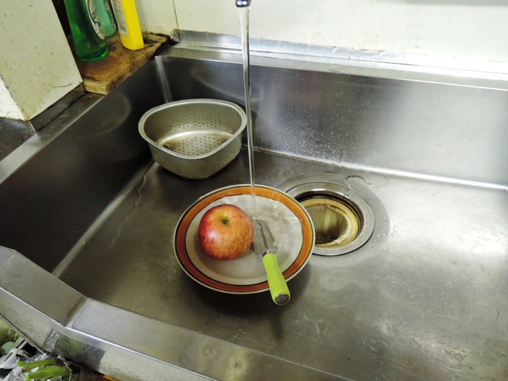 我切蘋果的時候,飯店餐廳已經打烊,廚房當然已經收拾乾淨了,所以使用的時候,有一種奇妙的感覺,就是很像到了別人家的廚房一樣,真是打擾了。