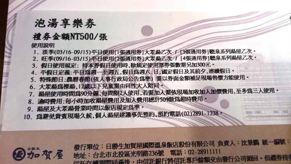 不過因為之前在旅展買了泡湯卷,所以淡季是NT1500;旺季則是NT2000。