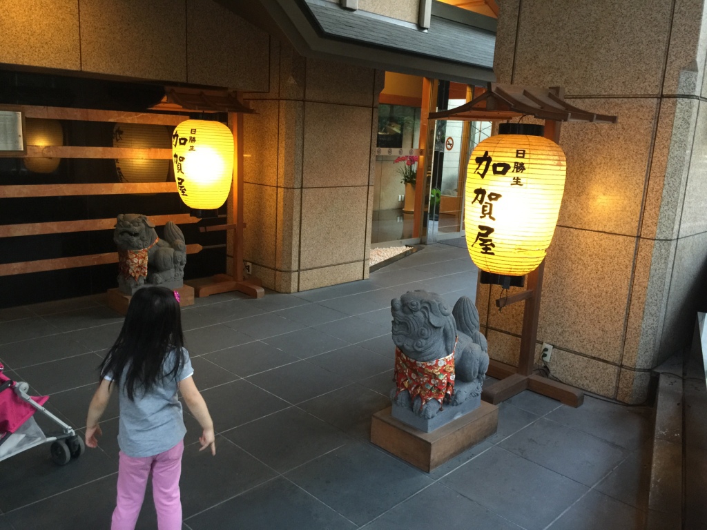 對了,從捷運站步行到加賀屋的路上,會經過一間7-11,有時間不妨進去晃晃,裡面有一隻OPEN小將穿著浴衣,相當可愛。