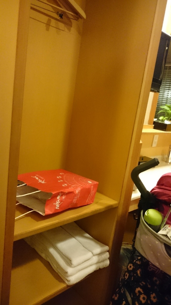 有一個衣櫃,可以掛衣服,毛巾也在這裡。