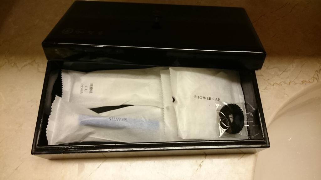 備品有梳子、浴帽、刮鬍刀和髮圈。