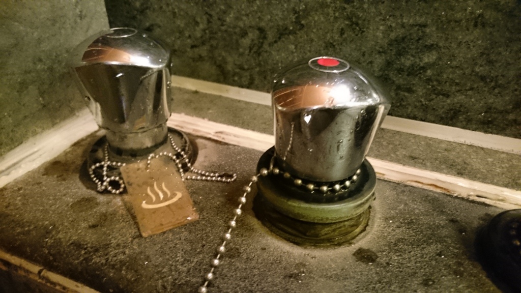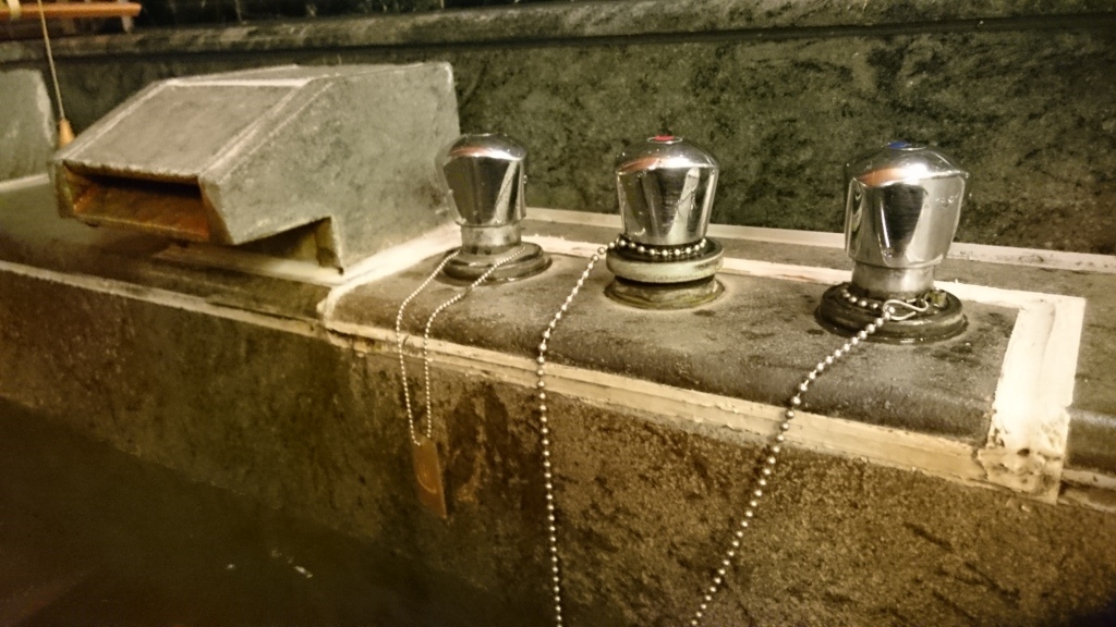 不管是哪一種池子,裡面都有三個水龍頭。一個冷水,一個熱水,一個溫泉水。