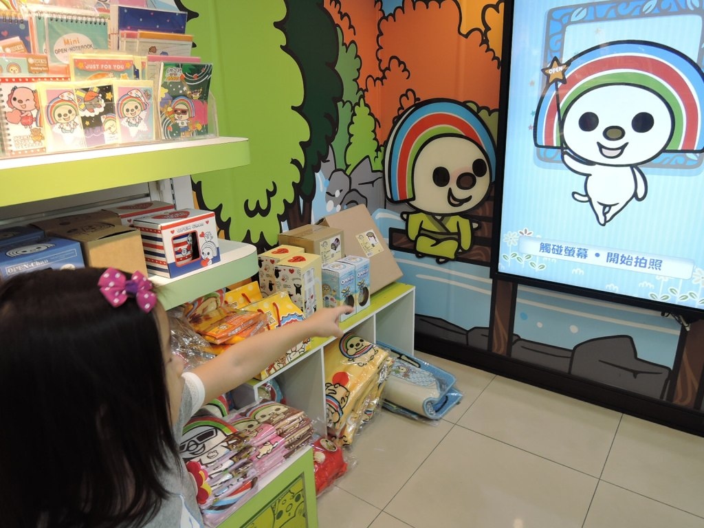 有一台互動螢幕可以拍照。