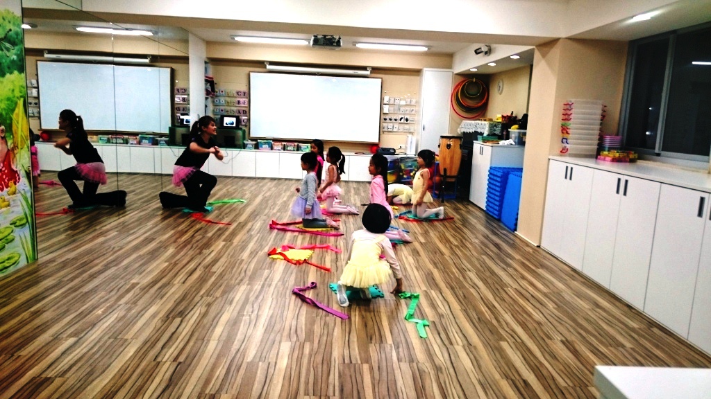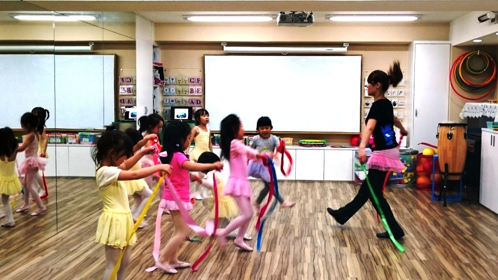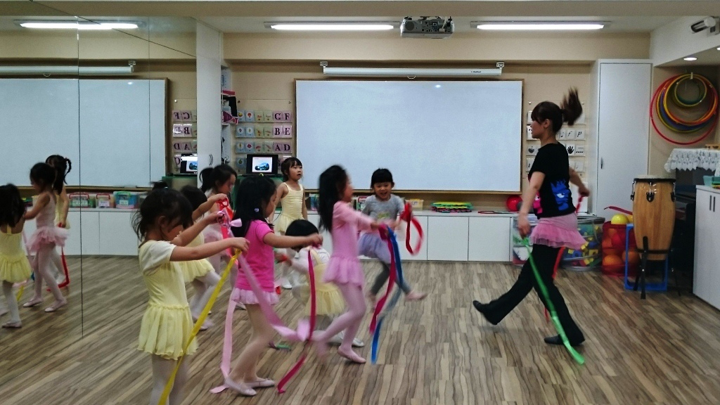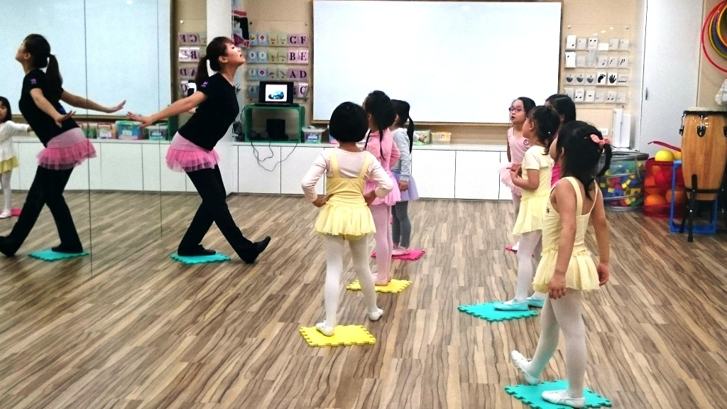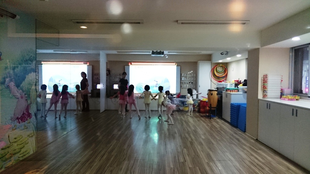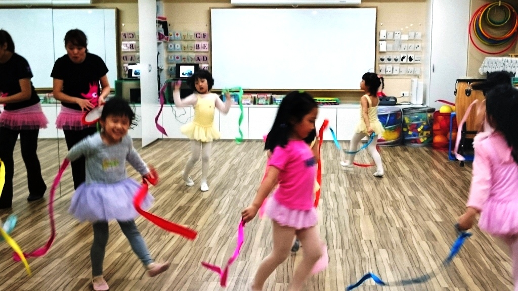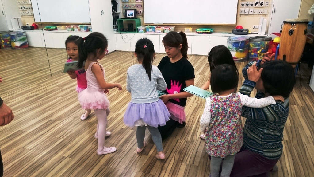 最後5分鐘是親子共舞時間,終於媽媽們可以進去了,老師會發教材,並說明今天上了什麼,然後會讓家長和孩子一起跳一小段。