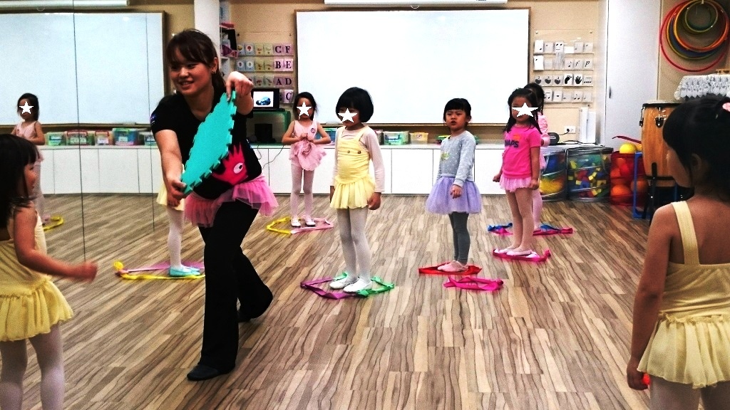 在此附上大約1分鐘的小短片,是這堂課拍攝的,因為隔著玻璃拍,所以音樂很小聲,而且旁邊有別的媽媽在聊天,請忽略她們的聲音XD~