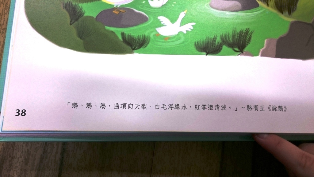 書中就可以看到[詠鵝]這首詩唐,書本有附CD,回家可以自己練習。(當然我們試上就沒有教材囉)