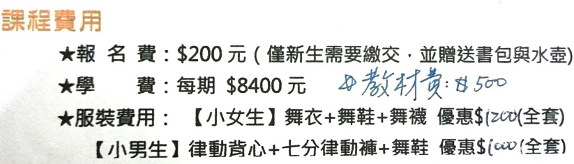 每期NT8400,一期是22堂課,所以一堂課的費用大約是NT380。價格算是平價的。
