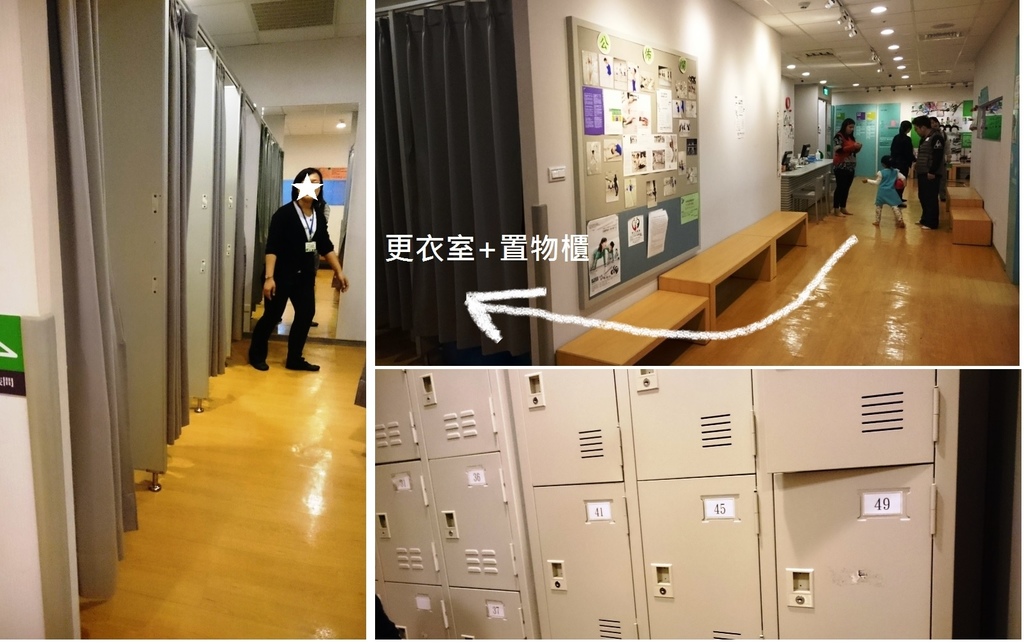經過櫃台之後就是更衣間和置物櫃,不貴重的東西都可以放在裡面,櫃子沒有鑰匙不能上鎖,僅供放置東西。