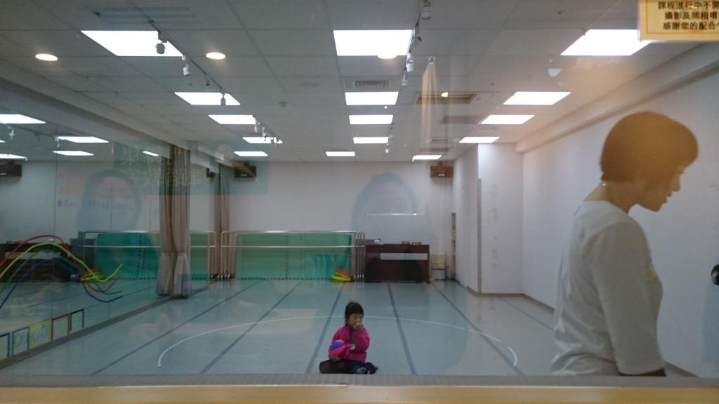 信義館一共有三間教室。除了[3歲的親子律動課]之外,其他生活律動課都是孩子獨立上課,家長要在外面等待,但是可以透過[看課窗口]來觀看孩子的上課狀況,這個玻璃窗口有貼上特殊的反光紙,可以從外面看進去,但是孩子從教室看出來卻像黑黑的鏡子,要很仔細看才會覺得有點透明,目的就是希望孩子可以專心不受外面的干擾。
