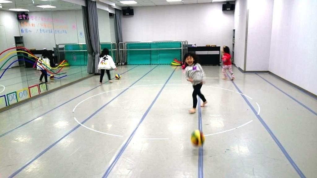 上課前小朋友們在教室內玩球,芸芸簡直是玩瘋了,還沒上課就滿頭汗。