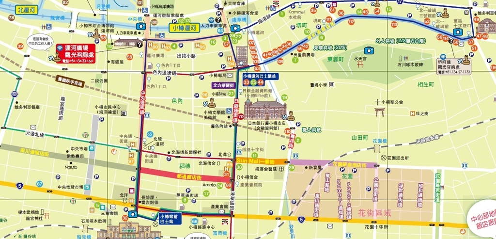 再來一張地圖,下圖中的[H94]就是活力小樽飯店的位置。地理位置極為方便,主要原因如下。