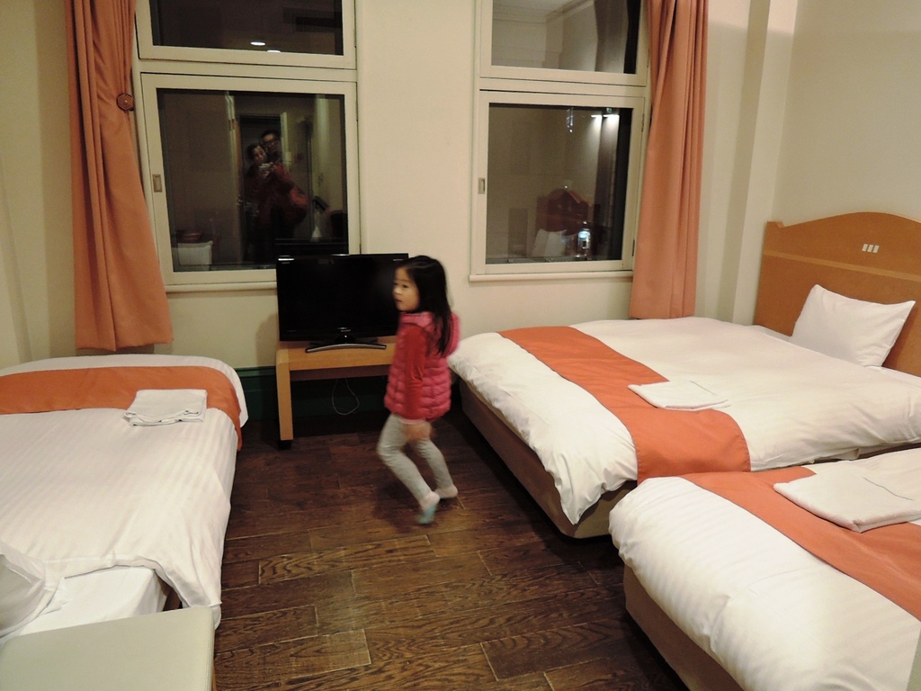 我們訂的房型是三人房,雖然其實訂兩人房就可以,(因為兒童可以免費入住),但是當時雙床房(Twin Room)已經客滿,我又不想只訂一張雙人床(Double Room)。所以為了睡的舒適一點,我直接定了三人房(Triple Room) 。飯店房型請看這裡=> http://www.vibrant-otaru.jp/en_guestroom/index.html