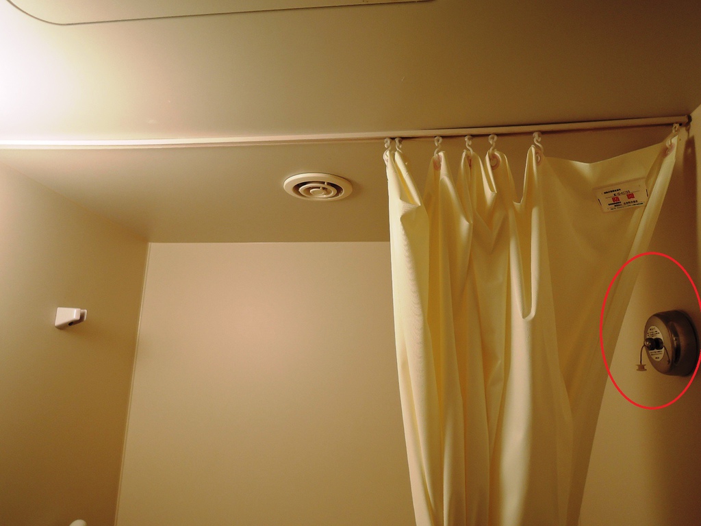 浴缸上方有晾衣服的鋼線可以拉出使用。