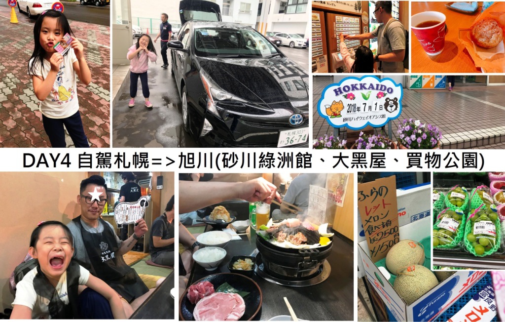 札幌租車自駕開始=>道央自動車道=>砂川綠洲館休息站=>旭川和平通買物公園=>旭川藝術飯店