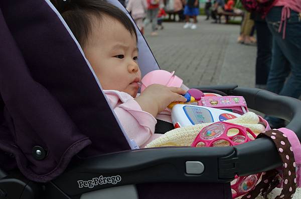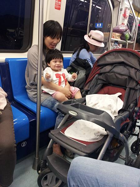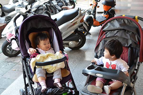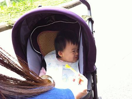 後來Jerry手痠到不行...連哄帶騙把糖糖騙到芸芸的推車上坐著...