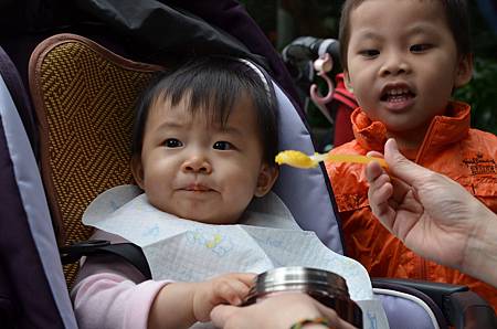 下午3點拿出來餵小芸芸...食物泥依然是溫溫的...吃起來味道一樣...