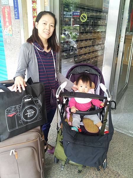 黑色包包是Combi媽媽包/綠色包包是Ethan的相機包,裡面還塞了一台筆電