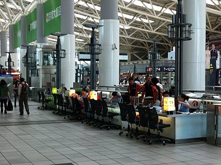 到出口前看到一排旅行社與租車公司...想租車的人就可以在這裡申請了...