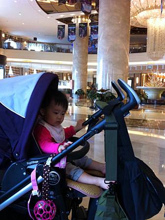 這樣寶寶就可以連推車一起停在座位旁邊...