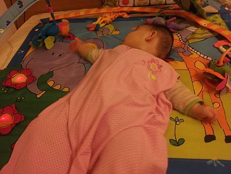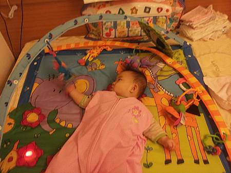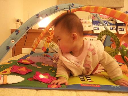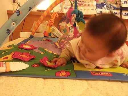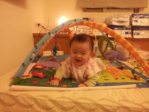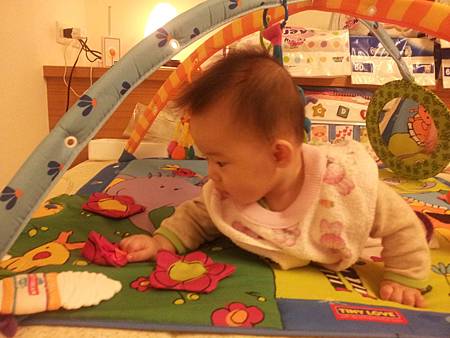 也可以直接把拱型吊條壓平...像芸芸這樣...換尿布就不會一直被玩具卡到...