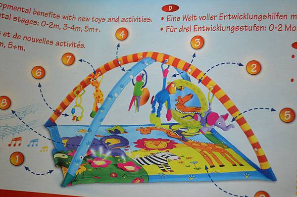他的官網有特別提到...遊戲墊上的拱型吊條"arches effect"...