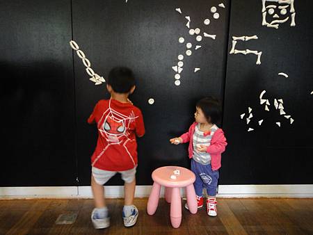 這裡面有一面大黑板...上面吸有骨頭造型的磁鐵...