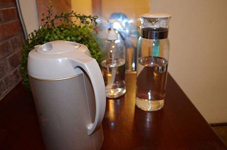但沒有飲水機...只有一瓶冷水壺和熱水壺...