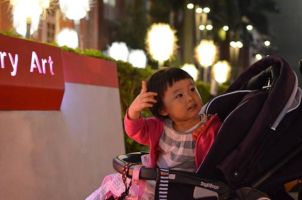 遠處的愛心是樹上的燈光...小芸芸也看得目不轉睛...