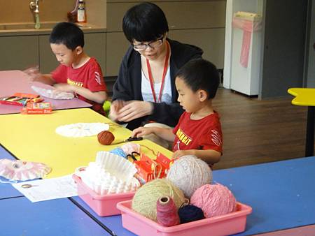 這些小桌椅是用來給工作人員教小朋友做一些簡單的小作品...