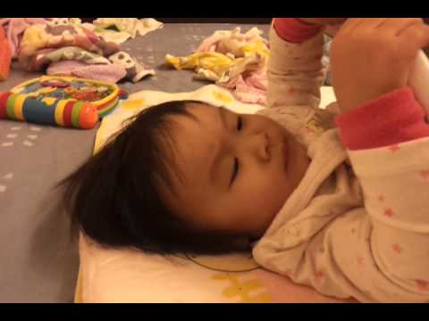 因為是睡前拍的...芸芸正躺著換尿布...所以我只拍上半身...