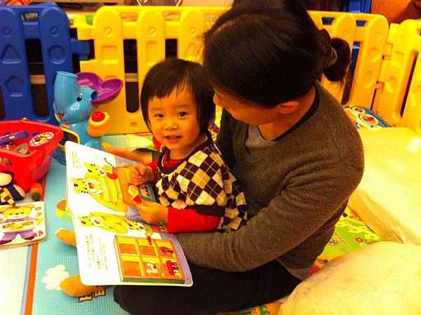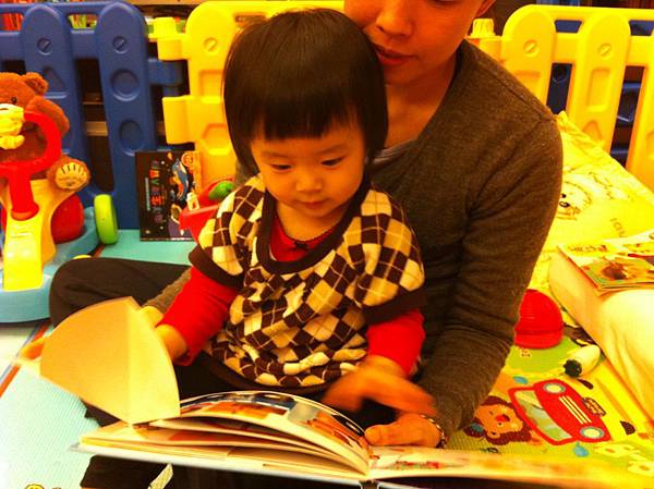 要我念給她聽...一開始我很訝異...因為我從來沒教過她坐在我腿上看書...