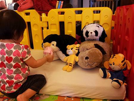 現在的芸芸已經會假裝餵朋友(玩偶)吃飯和喝水了...