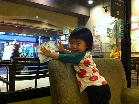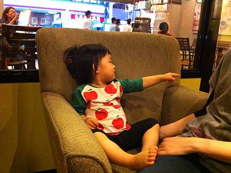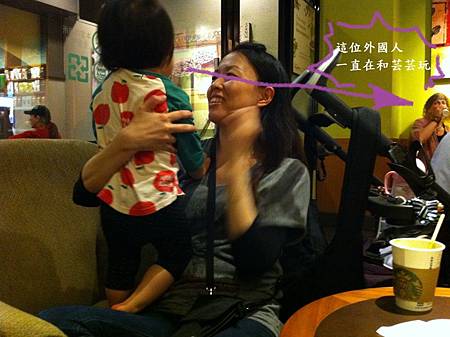所以就帶芸芸去咖啡廳坐坐...芸不斷指著另一個角落...