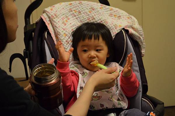 =>在家先將食物泥加熱好...放在悶燒罐裏面帶出門