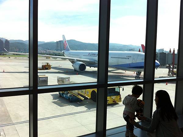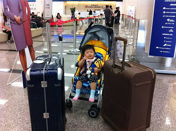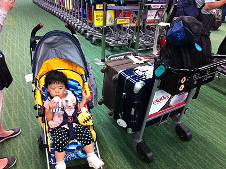 我們要在這裡等推車...帶推車出國時...記得推車交給空姐就好了...
