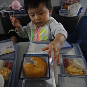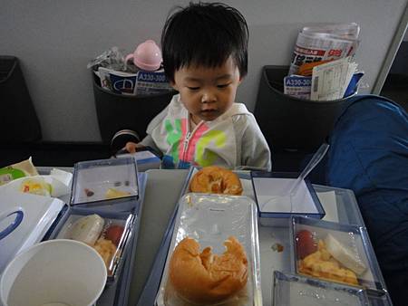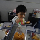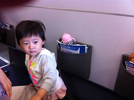 飛行過程中...主要飛機起降時...我有塞米餅給芸芸吃...