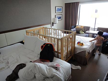 兩張單人床...嬰兒床是我特別和飯店要求的...