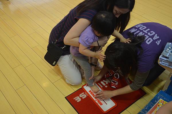 店員小姐幫芸芸量腳長...芸芸一開始還把腳趾頭縮起來@@...