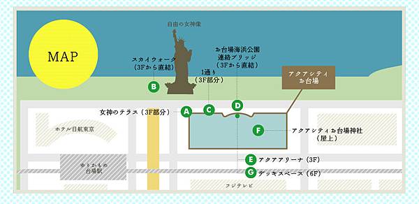 下圖是一離開Aqua City走出來的地方...可以看到自由女神喔...