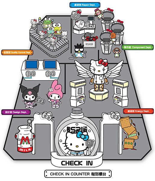 各訓練部門外的走廊...展示很多跨界合作的KITTY...