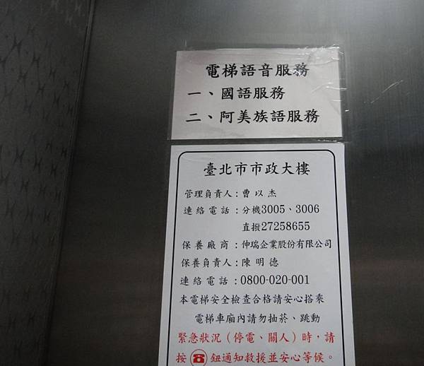 電梯裡播放的"報樓層語音"...居然有"阿美族語"...
