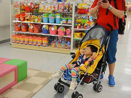 出國前...我和芸爸到許多婦嬰用品店去試推推車...